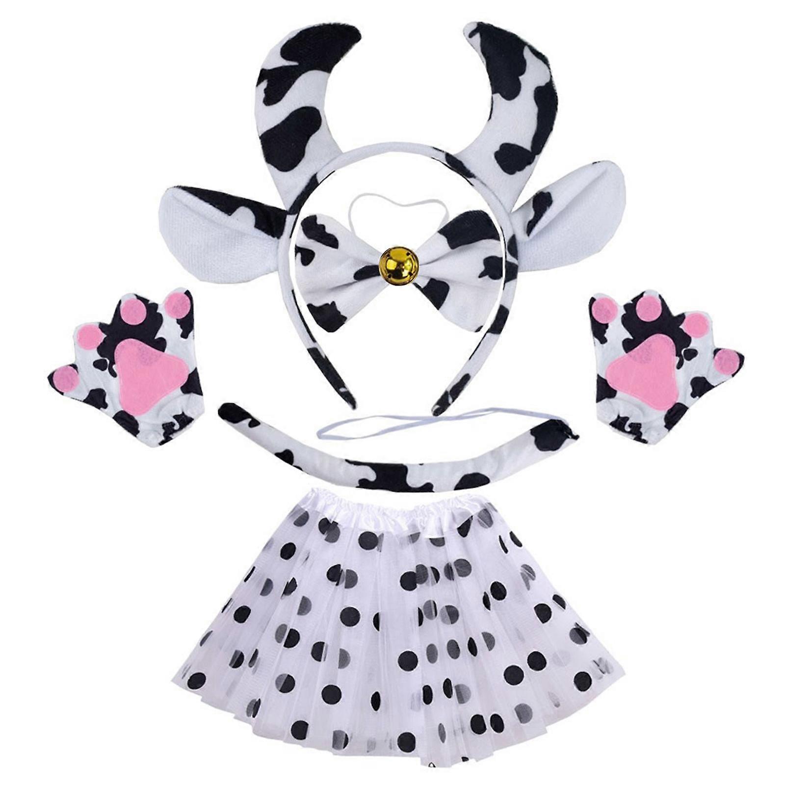 1/3/4/5pcs Cow Costumes for Kids Girls Cow Ears Headband Tail Bowtie Tail Tutus Skirt Glove Animal Cosplays Accessories