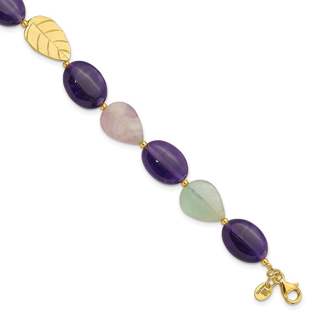 13.8mm 925 Sterling Silver Gold Plated Amethyst Fluorite Dyed Jade 1inch Extension Bracelet 8 Inch Link-Bracelet for Wom