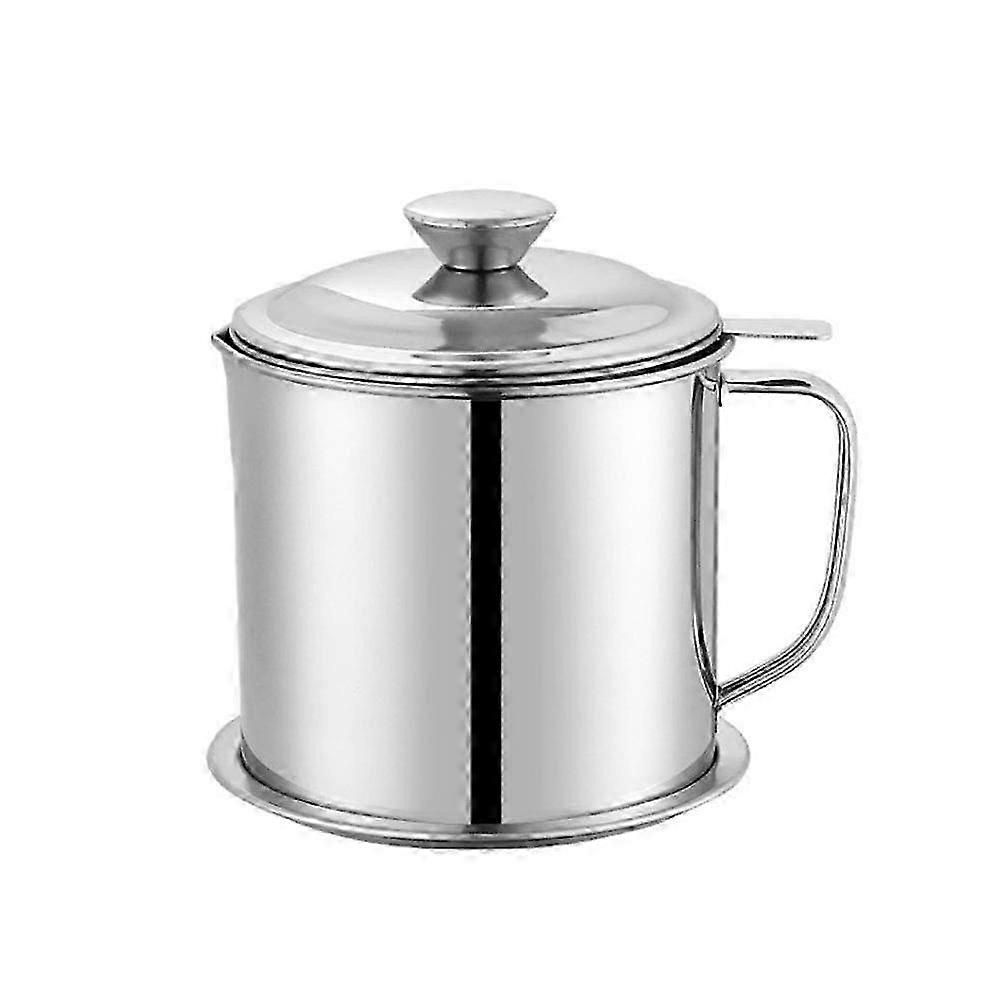 1.3L Stainless Steel Oil Pot with Lid & Strainer, Curved Handle for Food Separation