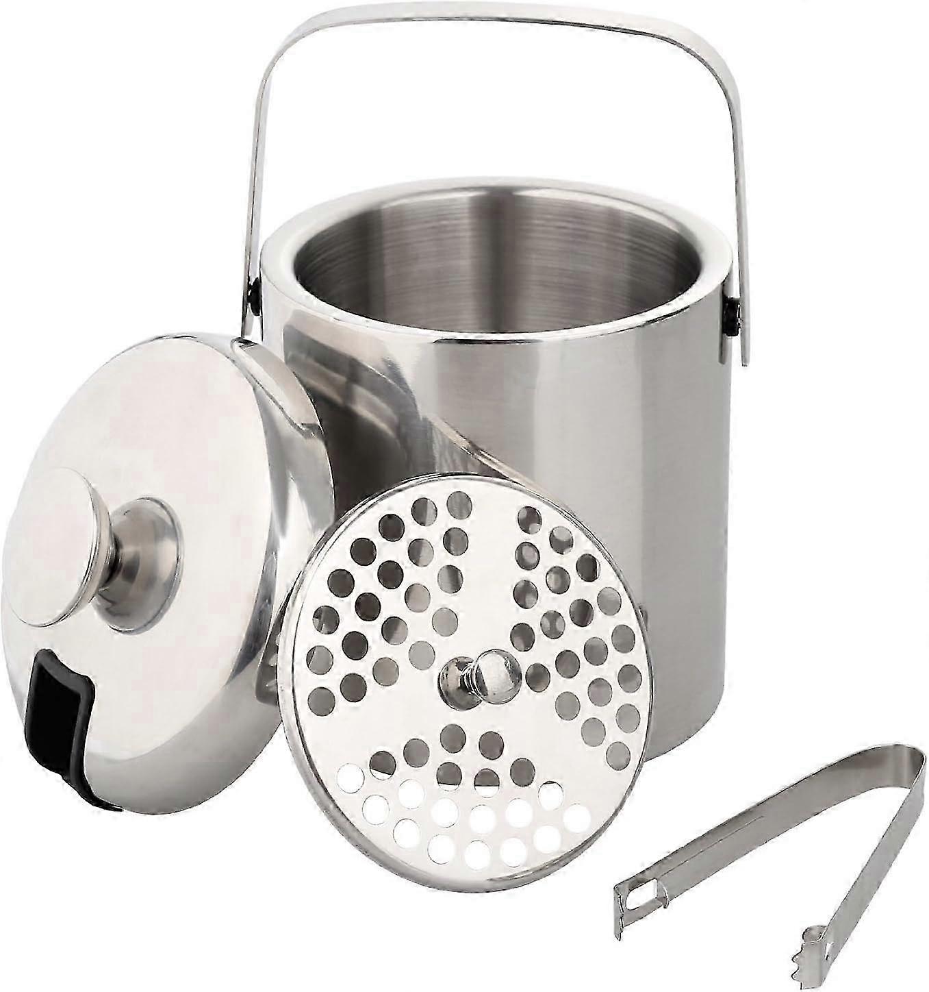 1.3L Stainless Steel Double Tier Ice Bucket with Tongs & Lid