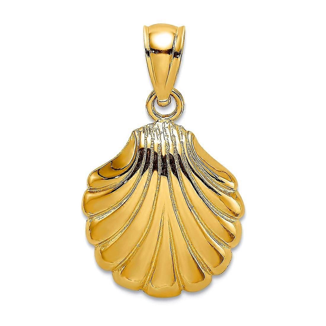 13mm 14k Gold Scallop Shell High Polish / 2 d Charm Pendant Necklace for Women - 1.5 Grams