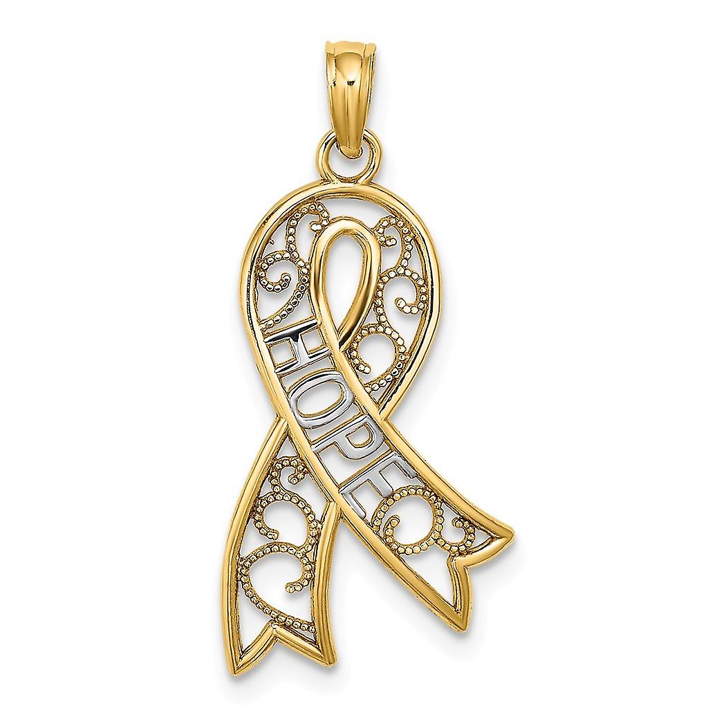 13mm 14k Two tone Gold Filigree Ribbon With White Hope-Two color Charm Pendant Necklace for Women