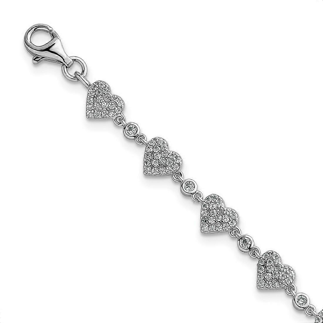 1.3mm 925 Sterling Silver Rhodium Plated Polished Pave CZ Love Hearts With 1in Extension Bracelet 7 Inch Link-Bracelet f