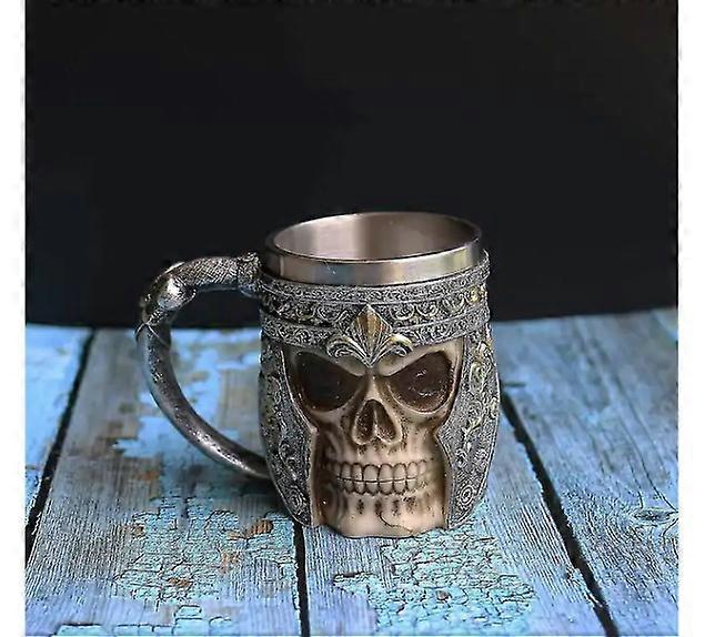 13oz Skull Coffee Mug Viking Skull Beer Mug Stainless Steel Liner Gift Men's Father's Day Gift Halloween Gift (1pcs)