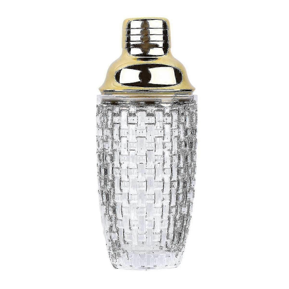 Premium Thick Clear Glass Cocktail Shaker Set Watch the of this glass shaker - watch the colors mix together to create a beautiful visual effect that tin shakers can't provide.No more spills or leaks - our cocktail shaker set features an extremely strong silicone seal around the edge of the lid, ensuring your drinks stay well mixed and mess-free.Perfect for any occasion - Whether you're hosting a party or just enjoying drinks , our reusable design with built-in strainer is perfect for making homemade cocktails, mocktails and martinis.Improve your bartending skills - Beginners and alike can use this glass shaker to easily whip up the most complex mixed drinks, making it a must-have for any home bar or cocktail enthusiast.Colour:goldMaterial:glass+metalPackage Contents:1 x Cocktail ShakerOnly the above package content, other products are not included.Note: Light reflection and different displays may cause the color of the item in the picture a little different from the real thing. The measurement allowed error is +/- 1-3cm.