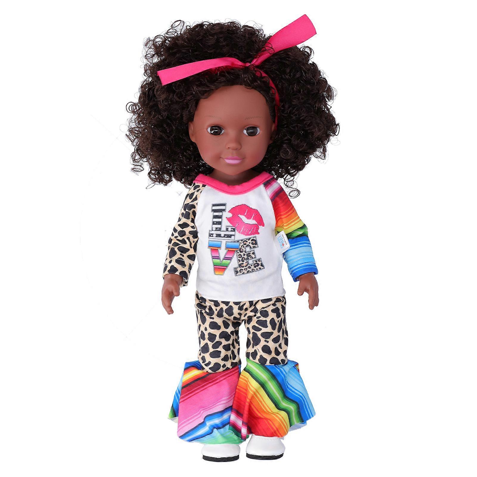 14inch African Dolls Lifelike Baby Doll Headband Children Kids Toddler Toy Birthday Gift