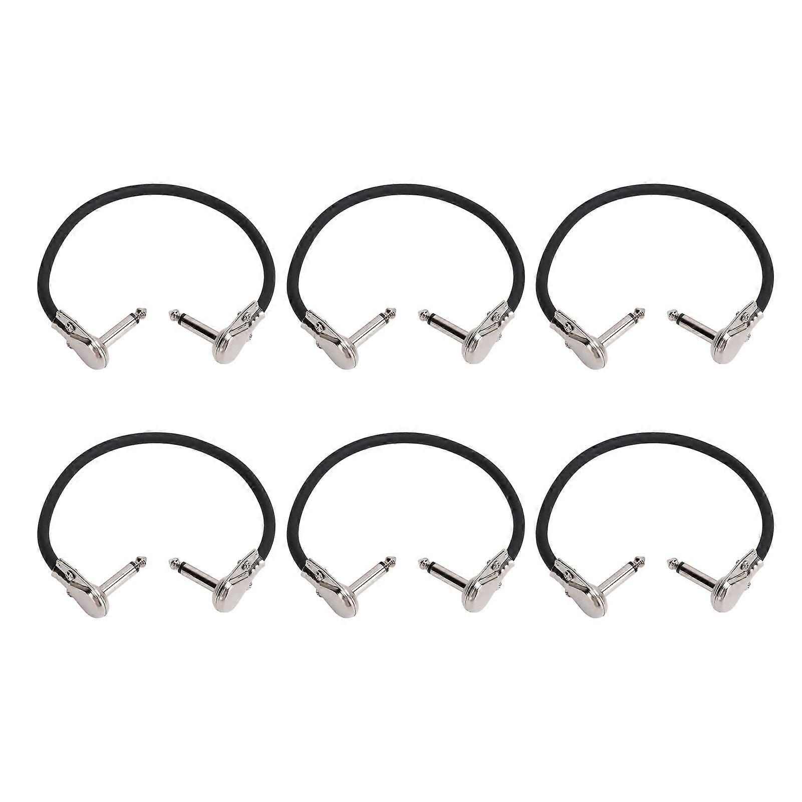 1/4in Right Angled 6Pcs 30cm Electric Guitar Effect Cable Flat Head Silver Patch Cable for Guitar Pedal