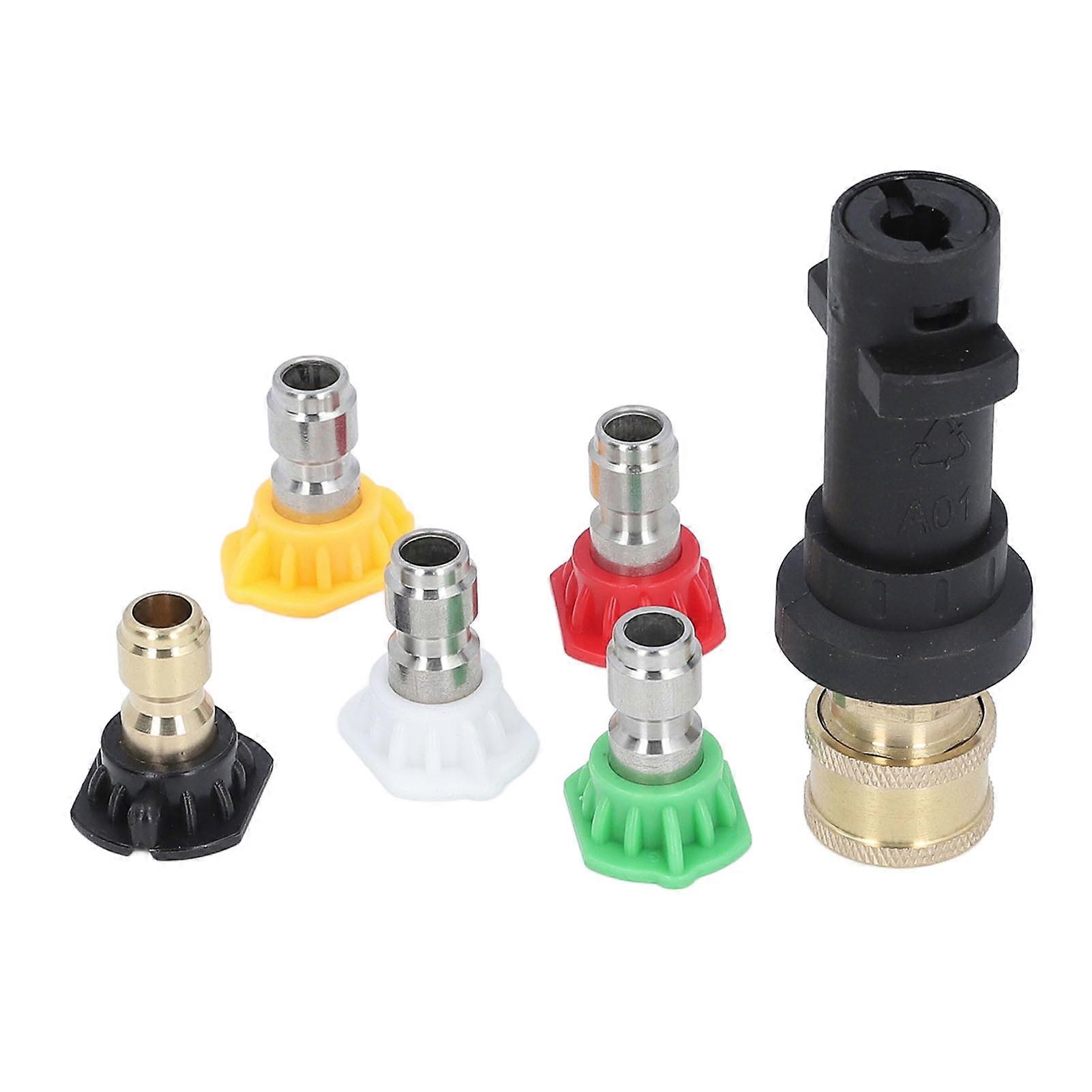 1/4in High Pressure Washer Gun Adapter with 5pcs Nozzles Set for Karer K2 K3 K4 K5 K6 K7