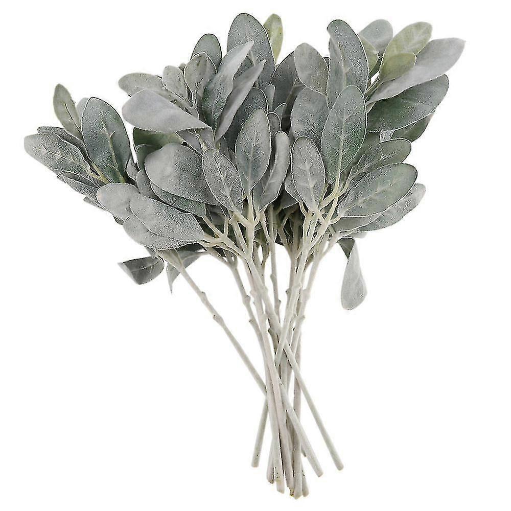 14pcs Artificial Flocked Greenery Leaves Short Stems,faux Lambs Ear Greenery Urn Filler Greenery Pl