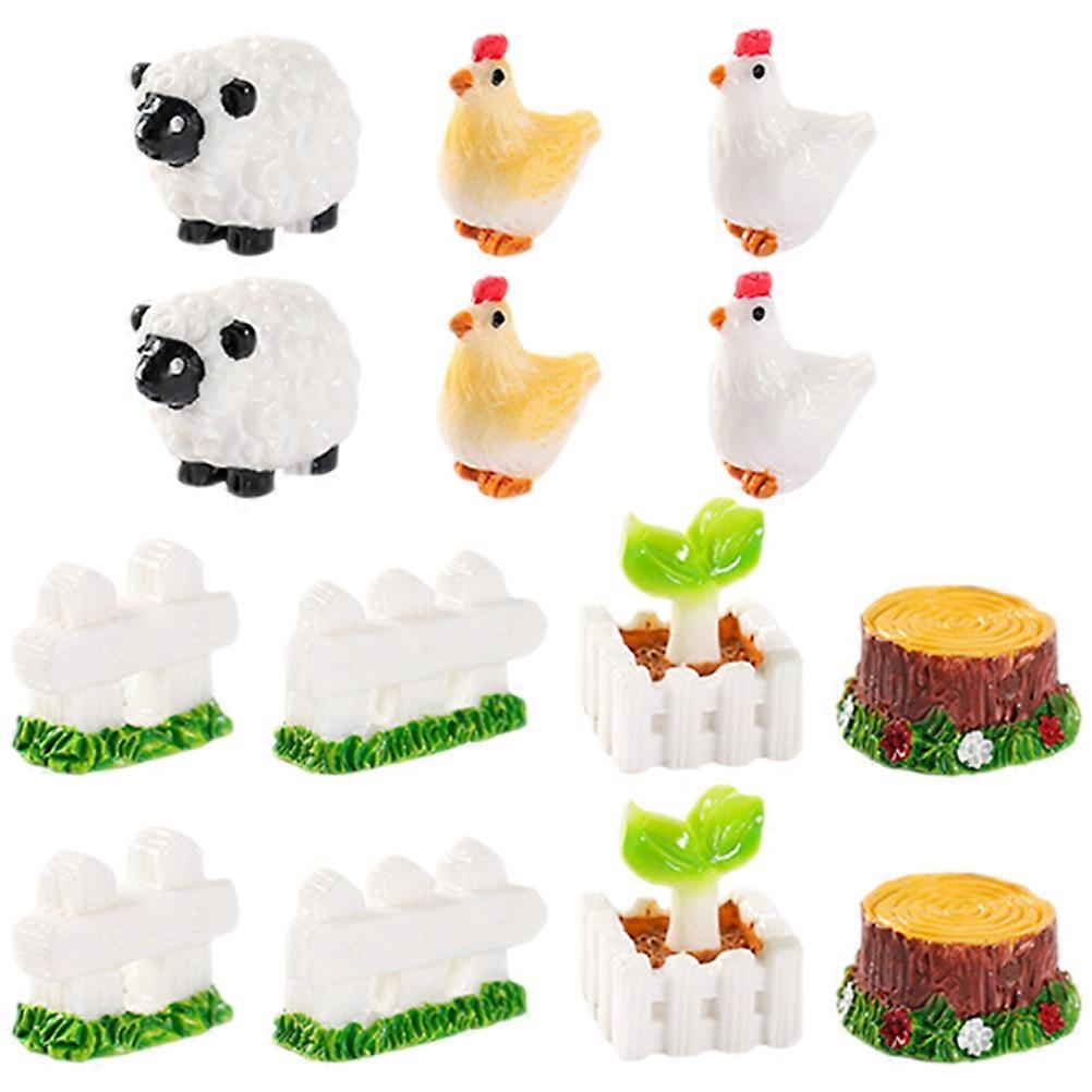14pcs Adorable Miniature Poultry Ornament Microlandscape Layout Model Resin Mini Animal Craft