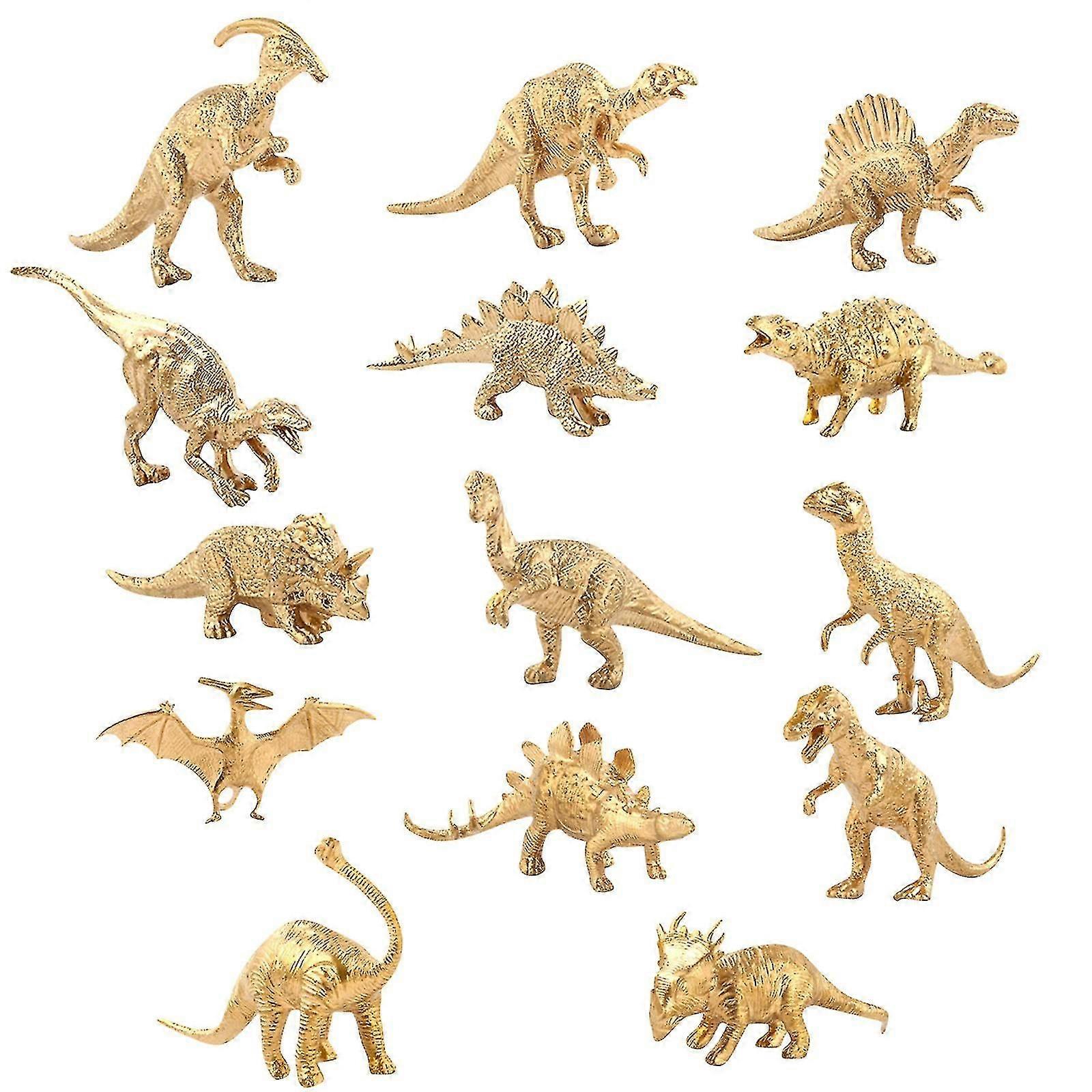 14-Piece Handcrafted Gold Dinosaur Birthday Party Decor and Model Toy Set