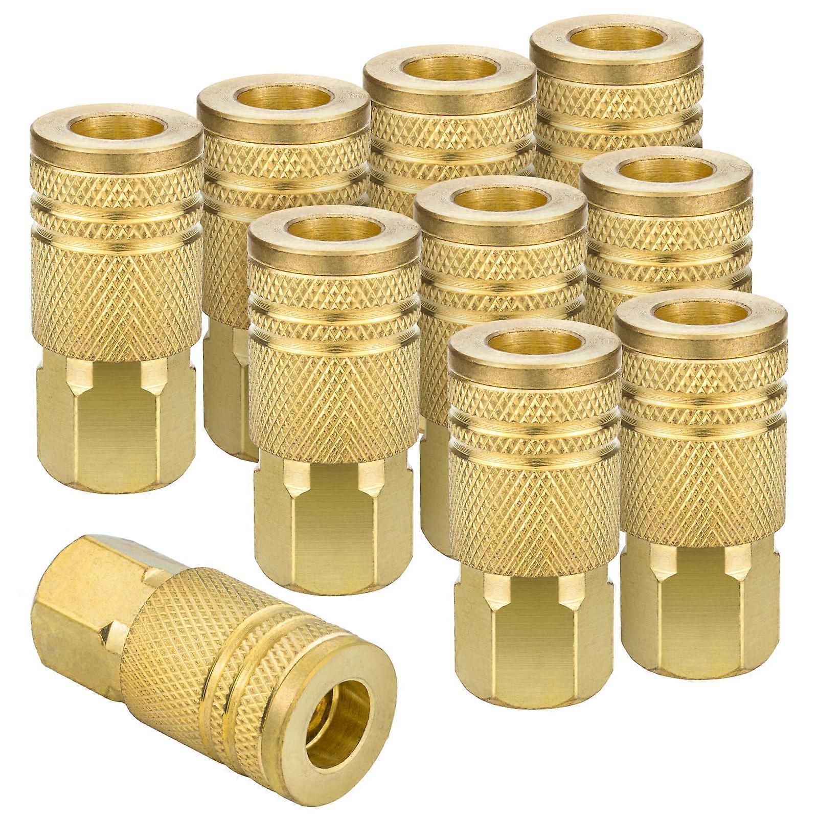 1/4 Inch Brass Female Industrial Coupler, 10 Pack Quick Connect Air Couplers for Air Hose, Durable and Corrosion Resistant