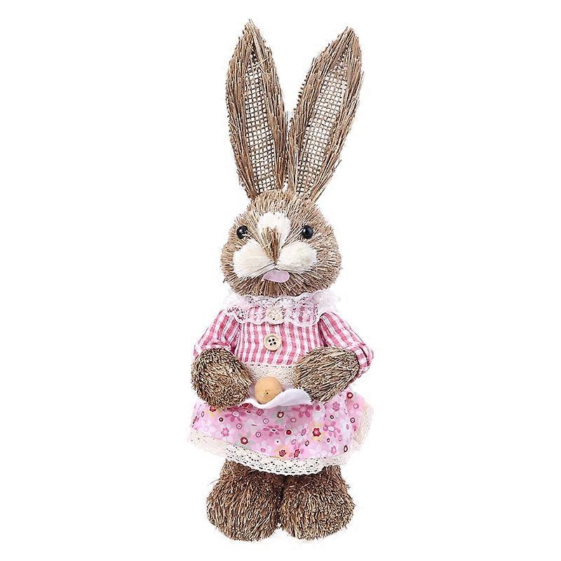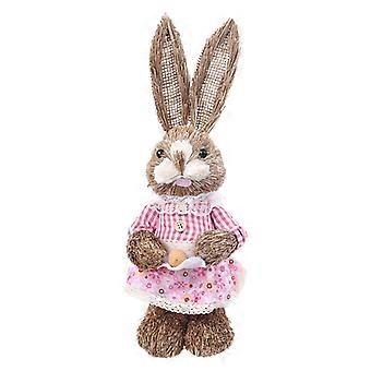 14" Artificial Straw Bunny Standing Rabbit with Carrot Home Garden Decoration Easter Theme Party Supplies