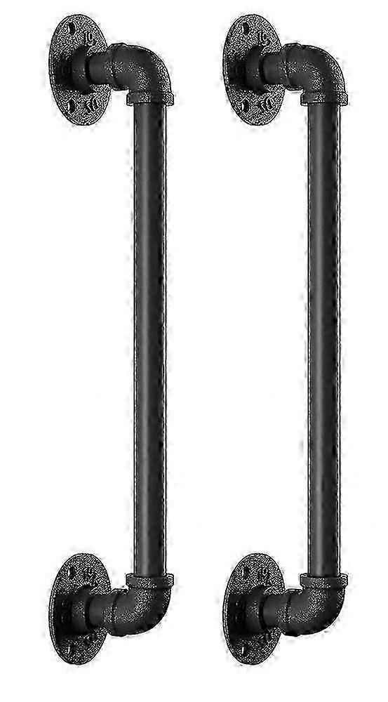 14' Industrial Pipe Black Iron Barn Door Pull Bar Handles Knobs, Rustic Front Exterior Gate Interior Sliding Hardware. (2 Pack 14 inch)