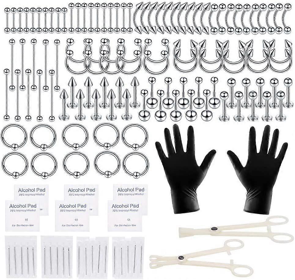 140Pcs Professional Ear Piercing Kit, 316L Stainless Steel Nose Piercing Kit Piercing Needles Nose Daith Eyebrow Lip Cartilage Tragus Helix Ear Pierci