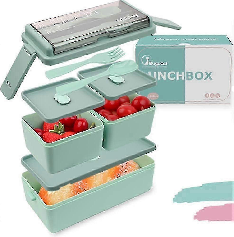 1400ML Bento Box Lunchbox with 3 Compartments & Cutlery - Microwave Safe Meal Prep Container for On-The-Go Dining