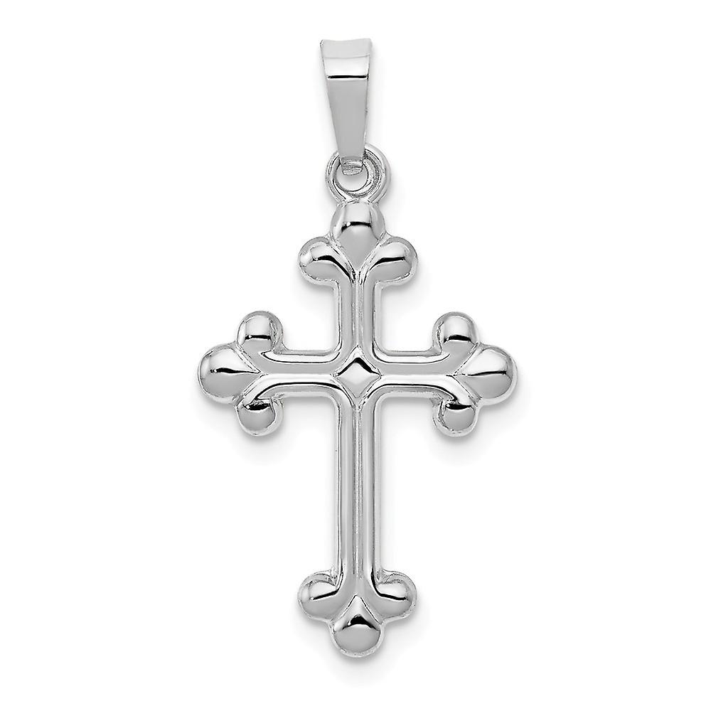 14.15mm 14k White Gold Polished Budded Religious Faith Cross Pendant Necklace-Pendant for Women