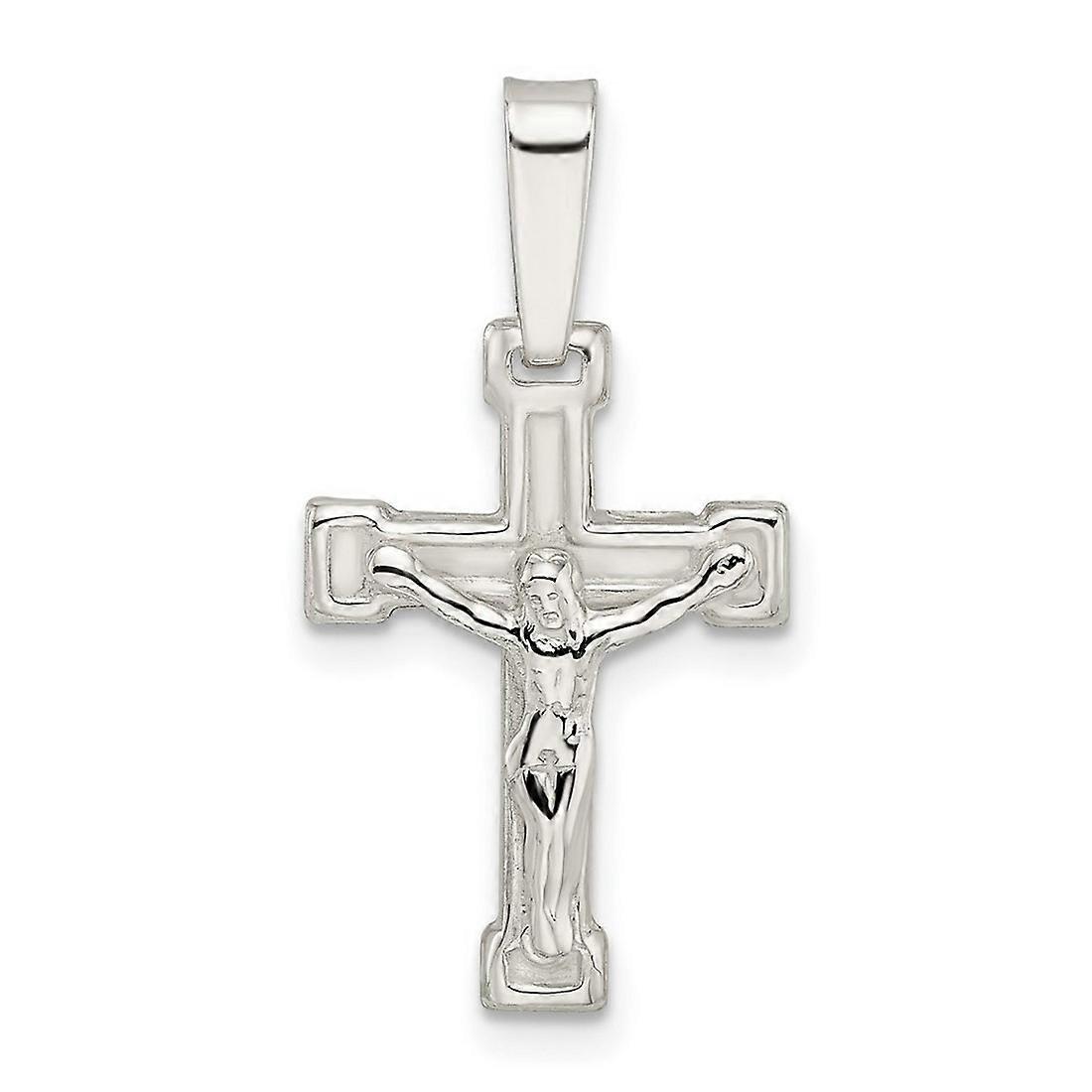 14.1mm 925 Sterling Silver Polished Crucifix Pendant Necklace-Pendant for Women - .8 Grams