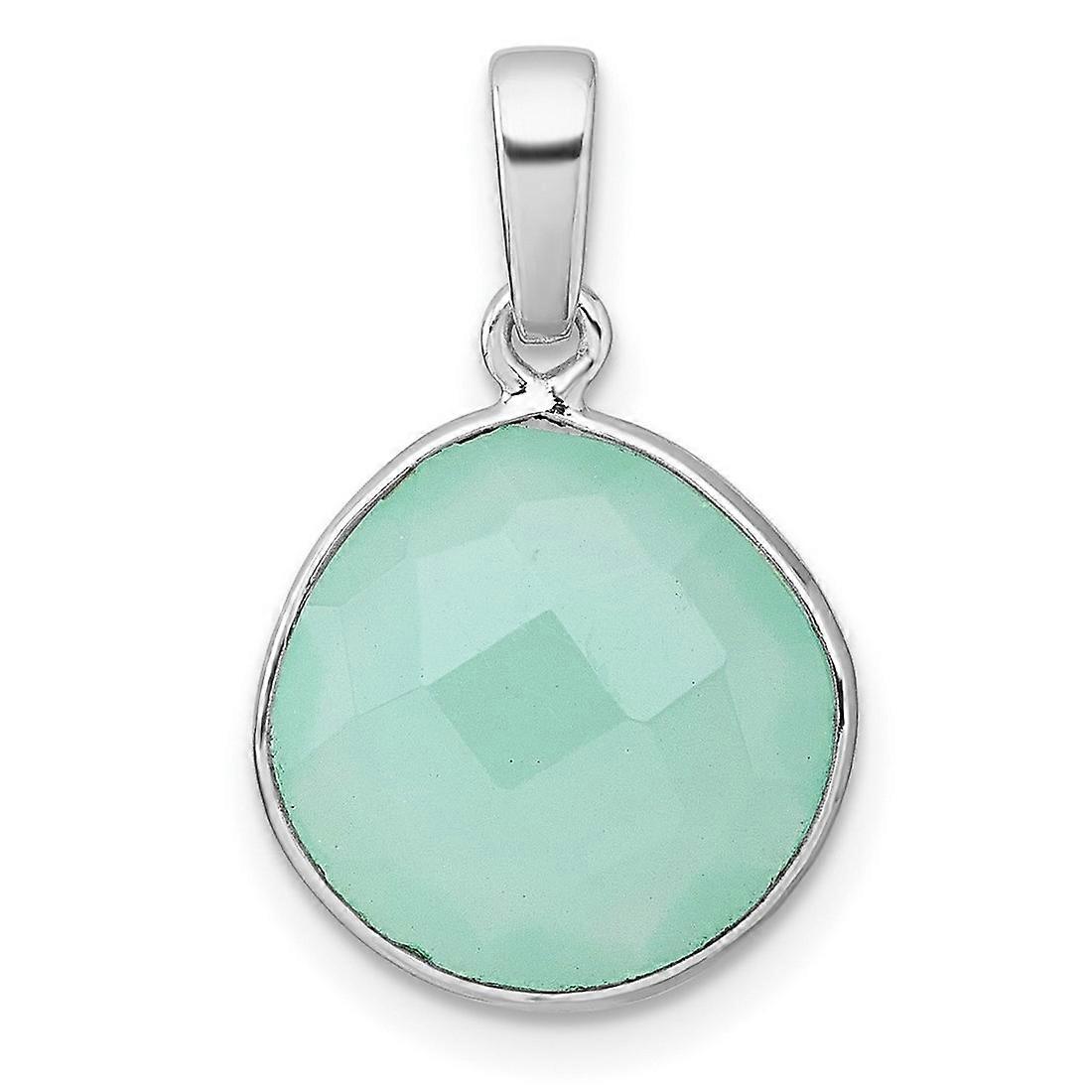 14.1mm 925 Sterling Silver Rhodium Plated Polished Round Green Chalcedony Pendant Necklace-Pendant for Women