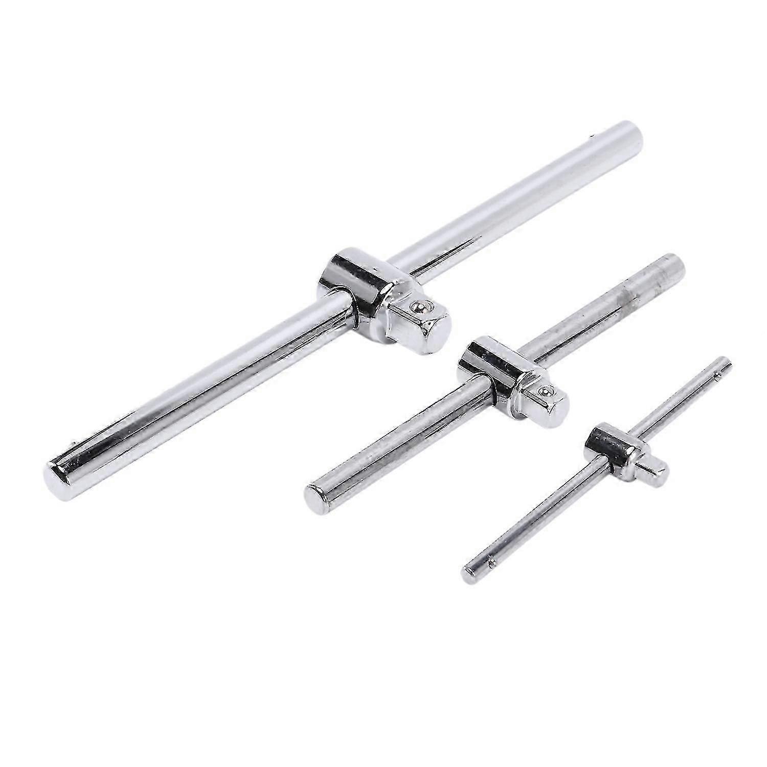Forging of -V Steel Anti stripping spring Fine embossing of slide rod surface Mirror polishing has strong corrosion resistance and is not easy to rust. Model Number: Sliding T Bar Type: Socket Wrench Size:1/4 inch; 3/8 inch; 1/2 inch Color: Silver Material: Steel Package Contents: 3 * socket wrench Only the above package content, other products are not included. Note: Light and different displays may cause the color of the item in the picture a little different from the real thing. The measurement allowed error is +/- 1-3cm.