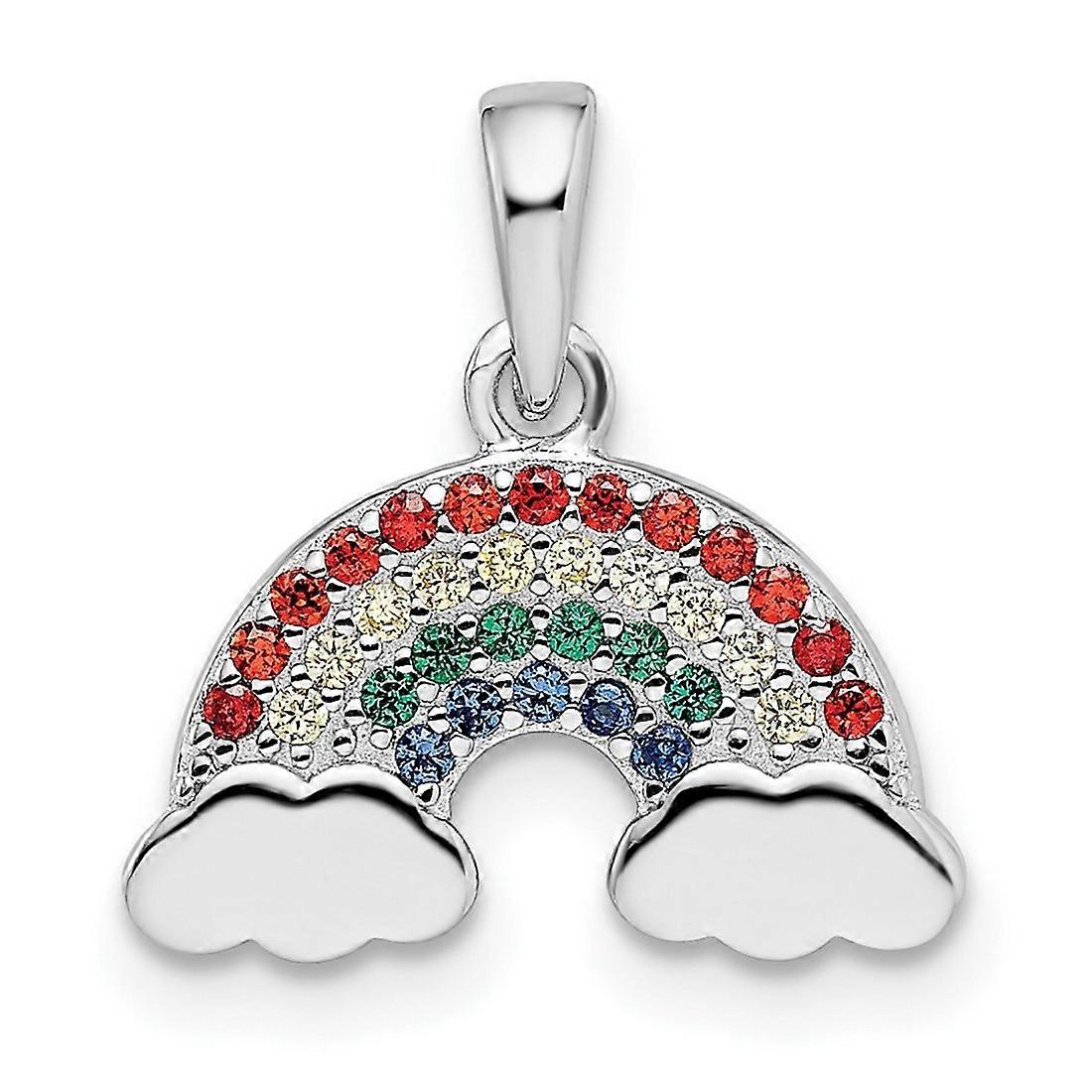 14.3mm Sterling Silver Rhodium-plated Multi-color Nano Crystal Rainbow Pendant - .8 Grams In Sterling Silver in Plated Metal - - Charm/Element Width: 14.3 mm - Charm/Element Thickness: 1.28 mm - Width of Item: 14.3 mm - Charm/Element Length: 11.9 mm - Length of Item: 16.6 mm - Bail Length: 5.7 mm - Bail Width: 3.35 mm - Finish: Polished - - This Item Does Not Ship With a Chain
