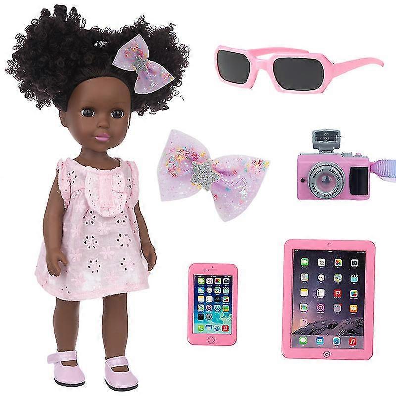 14.5 Inch Black Dolls Realistic Baby Doll Clothes and Accessories,Silicone African Baby Doll with