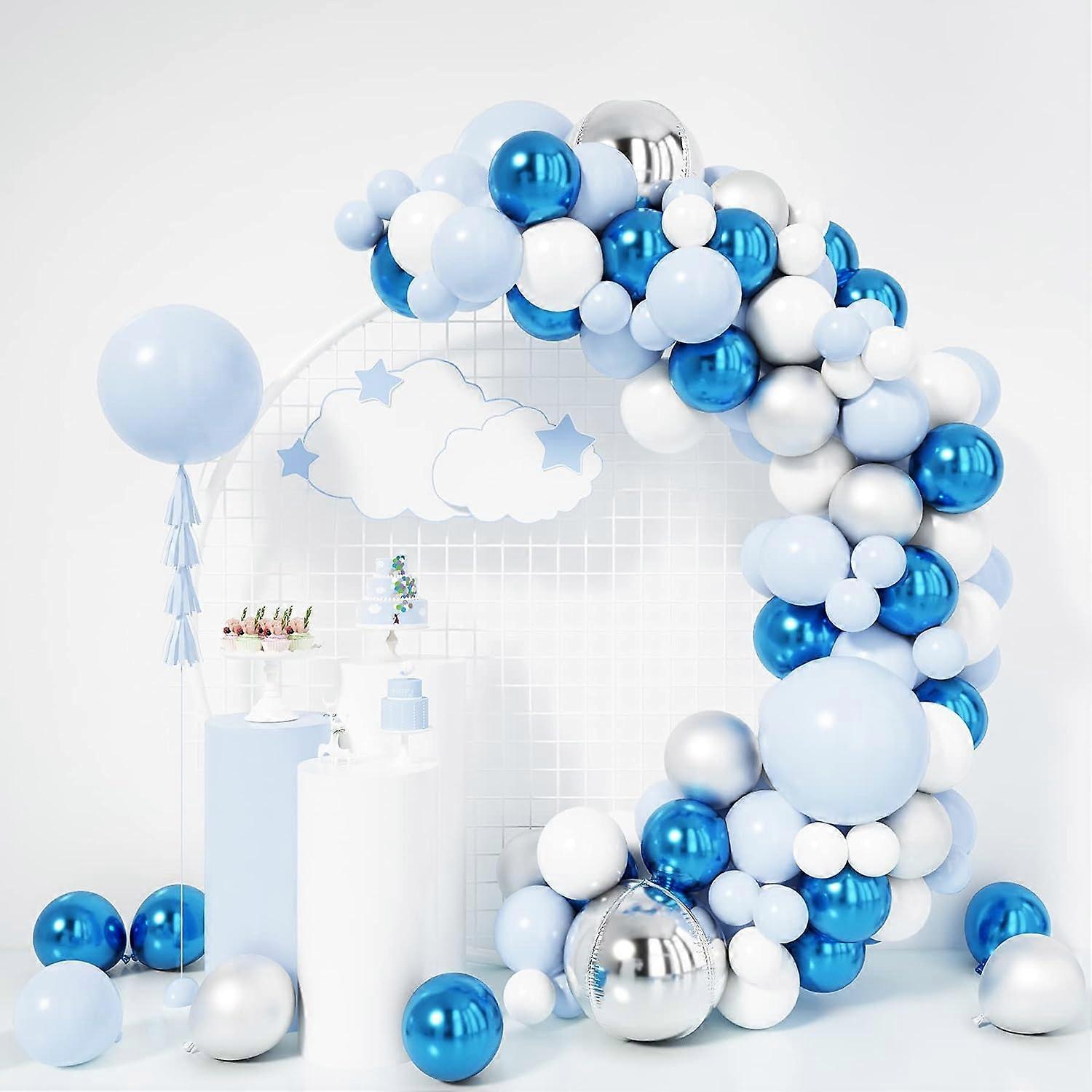 147pcs Blue Balloon Garland Arch Kit Metallic Pastel Blue White Latex Balloons and 4D Silver Balloons Set for Baby Shower Wedding Birthday Party Backg