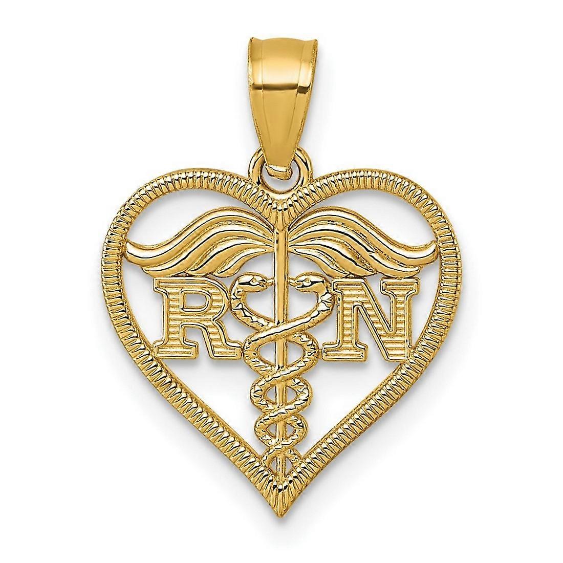 14.9mm 14k Solid Yellow Gold Polished and Textured RN Love Heart Pendant Necklace-Pendant for Women