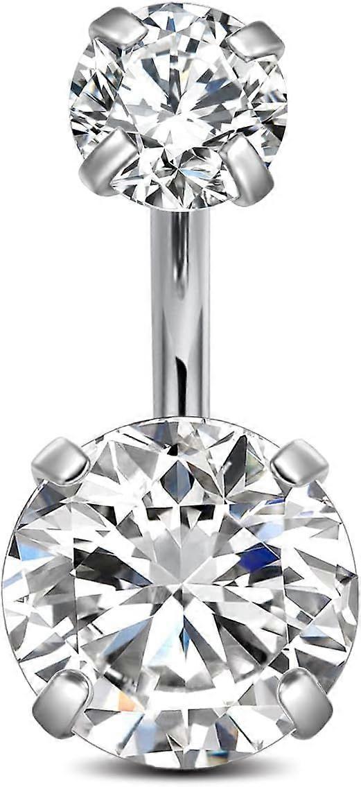 14G Belly Button Ring Surgical Stainless Steel Round Cubic Zirconia Navel Barbell Belly Ri