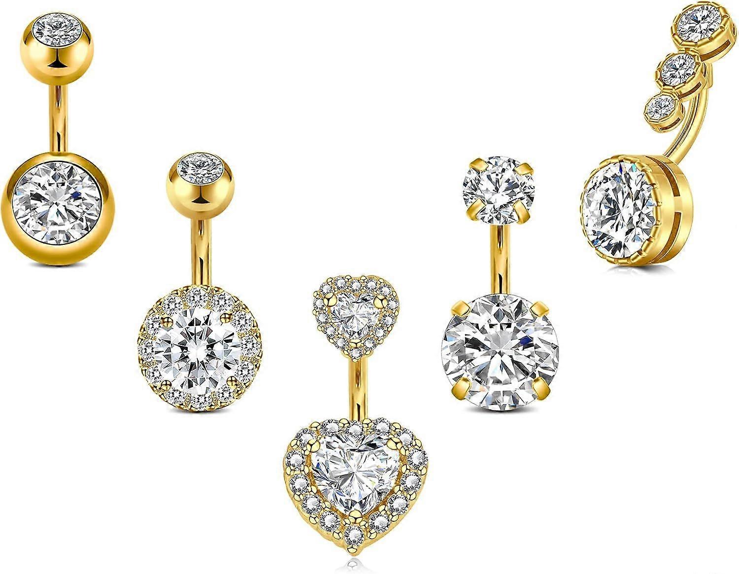 14G Belly Button Rings, Stainless Steel Heart Diamond 6mm/10mm Bar Belly Rings