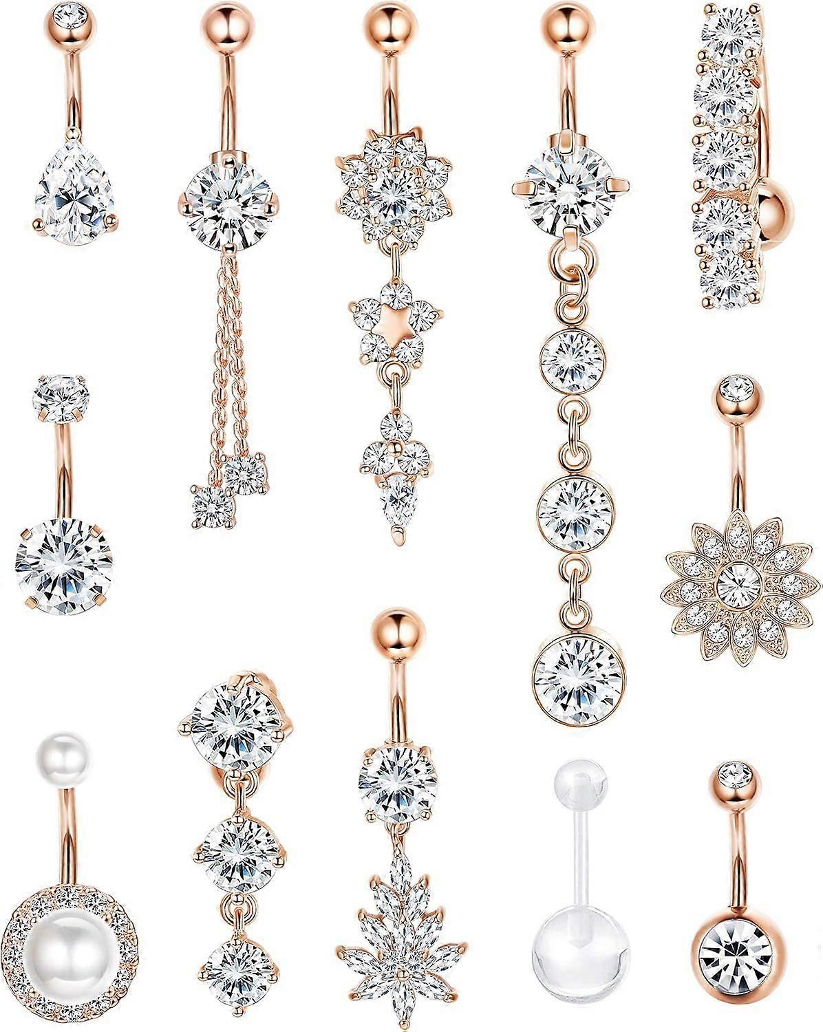 14G Belly Button Rings Dangle 316L Stainless Steel Belly Rings for Women Navel