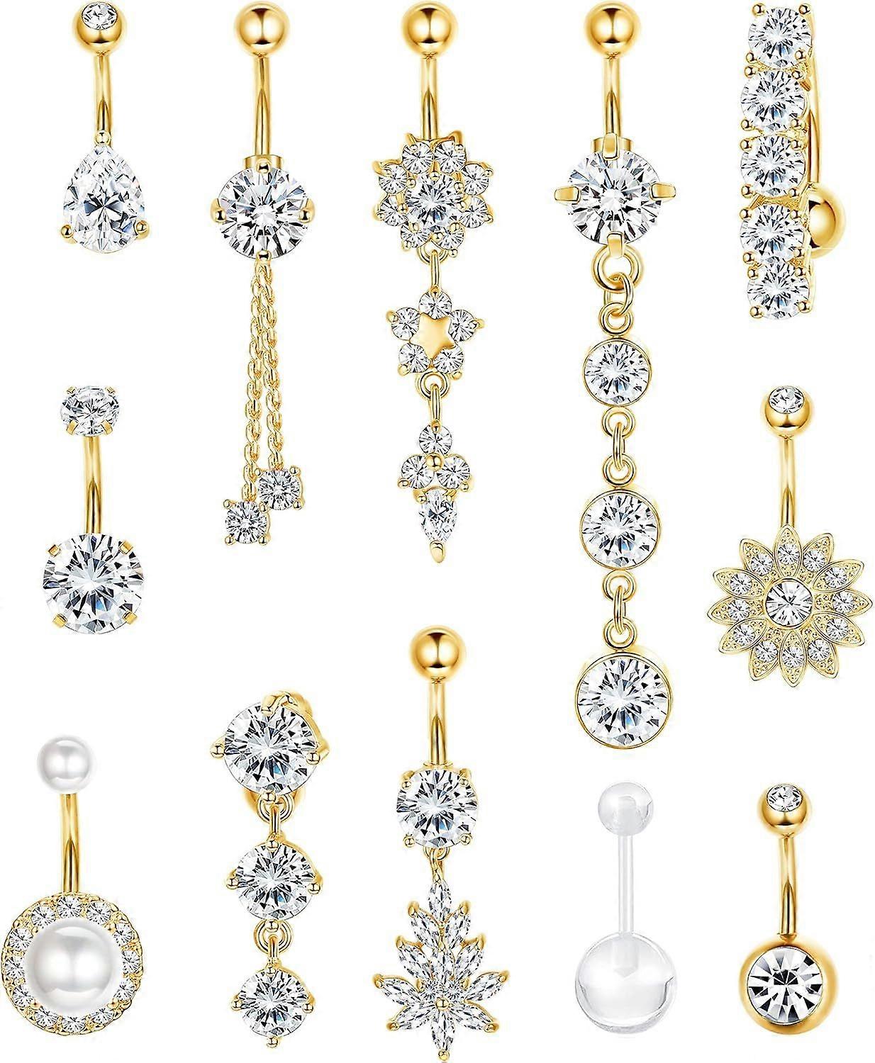 14G Belly Button Rings Dangle 316L Stainless Steel Belly Rings for Women Navel