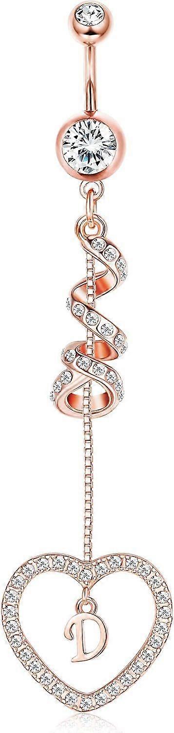 14G Belly Button Ring Dangle with Initials for Women Rose Gold Plated Navel Ring