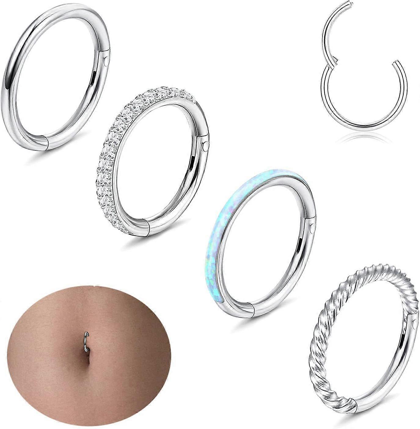 14G Belly Button Ring 316L Surgical Steel Belly Rings Hoop for Women Clear Opal