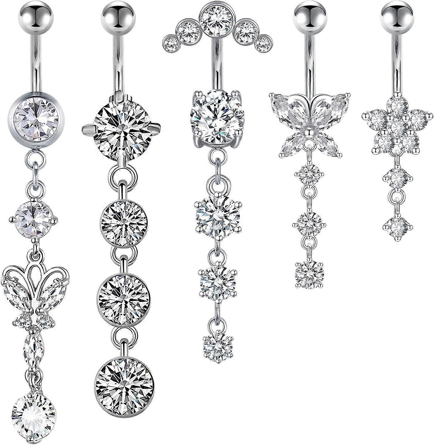14G Dangle Belly Button Rings - Surgical Steel Silver and Rose Gold CZ Piercing