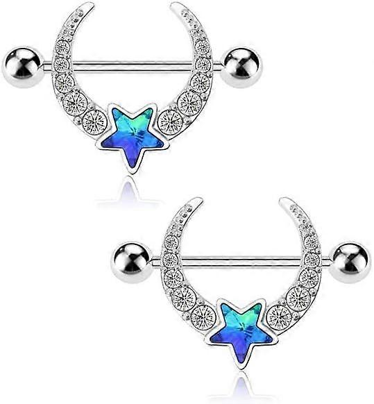 14G Nipple Piercing Jewelry, 316L Surgical Steel Barbell with Clear Moon Blue