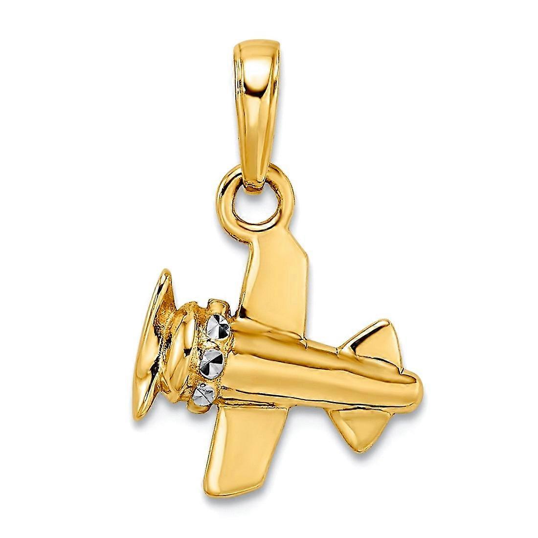 14k and White Rhodium 3d Sparkle Cut Airplane Pendant Necklace 20.06x12.68mm Wide 4.36mm Thick-Pendant for Women