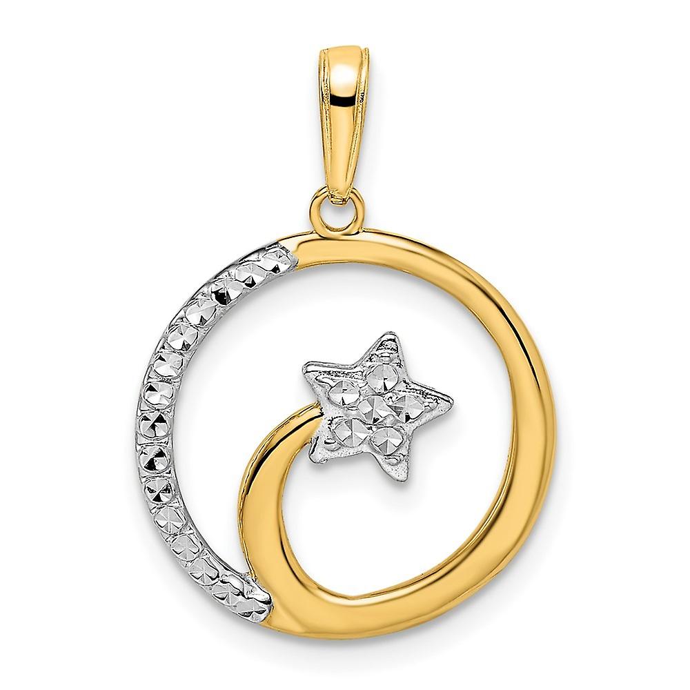 14k and White Rhodium Sparkle Cut Shooting Star Pendant Necklace 25.25x18mm Wide 1mm Thick-Pendant for Women