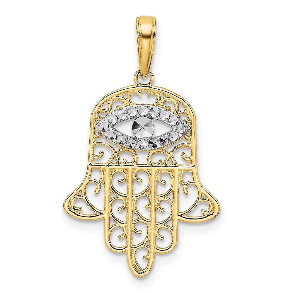 14k and White Rhodium Sparkle Cut Filigree Evil Eye Hamsa Pendant Necklace 29.43x17.57mm Wide 1.82mm Thick-Pendant for W