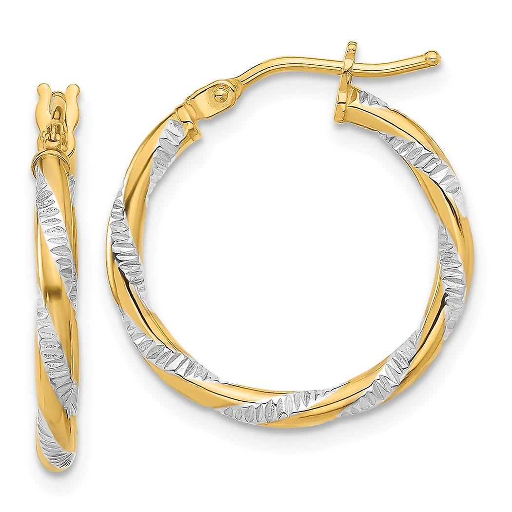 14k and White Rhodium Polished Diamond-Cut Hoop Earrings 19.7x19.5mm Wide 2mm Thick-Hoop Earring for Women