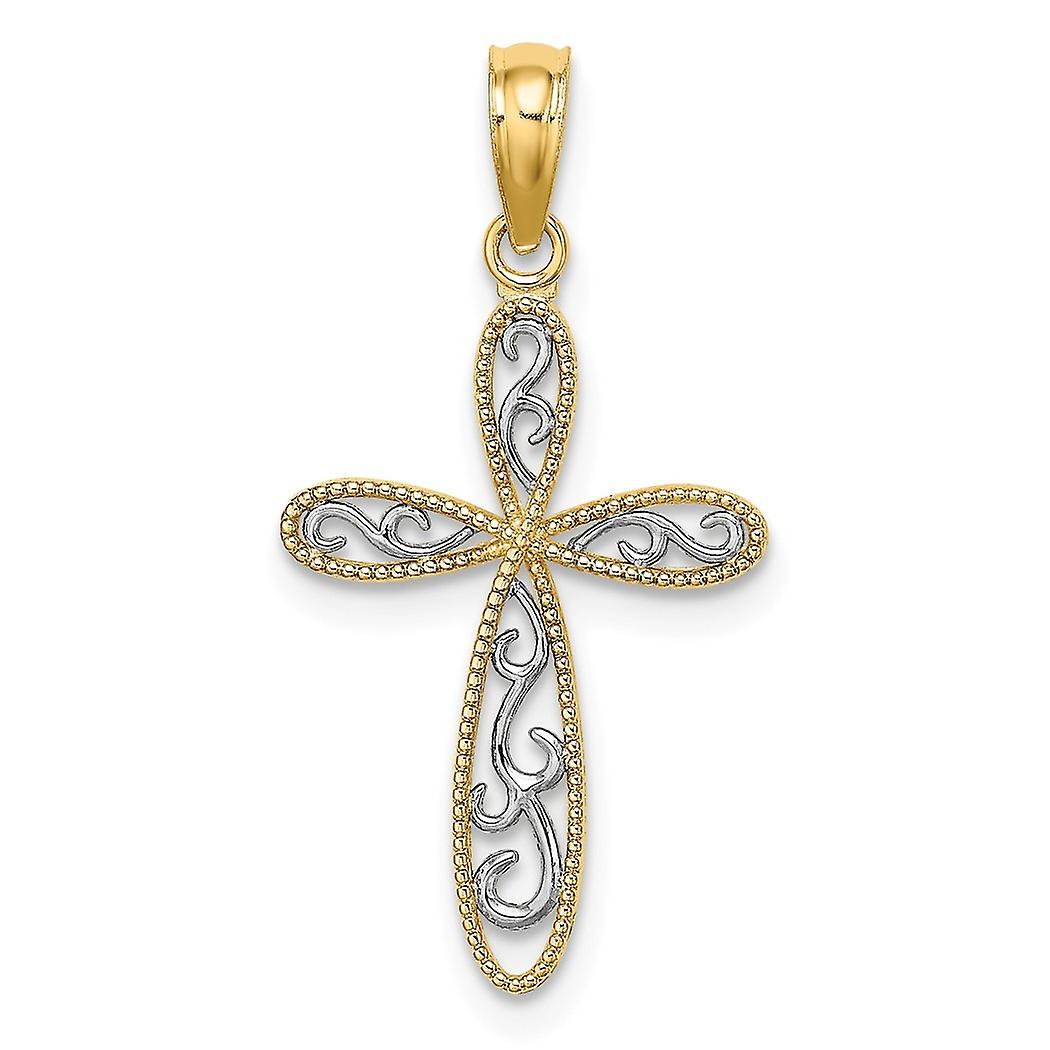 14k and Rhodium Polished Filigree Millgrain Religious Faith Cross Pendant Necklace 19.7x14mm Wide-Pendant for Women
