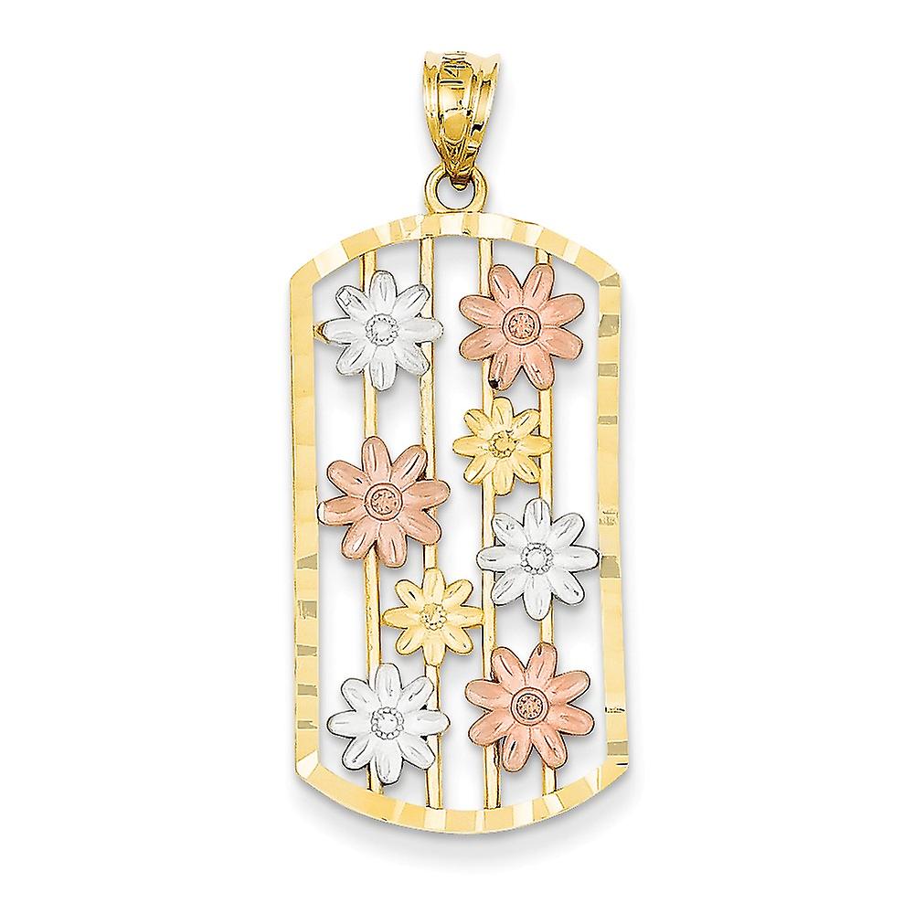 14k Yellow and Rose Gold Satin Polished Rhodium Framed Daisy Pendant Necklace 40x16mm-Pendant for Women
