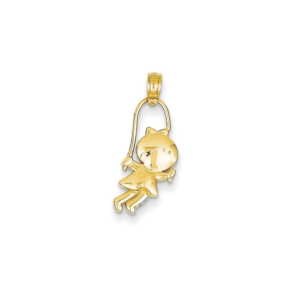 14k Yellow Gold Polished With Jump Rope Charm 22x8.3mm Wide Pendant Necklace for Women - .6 Grams