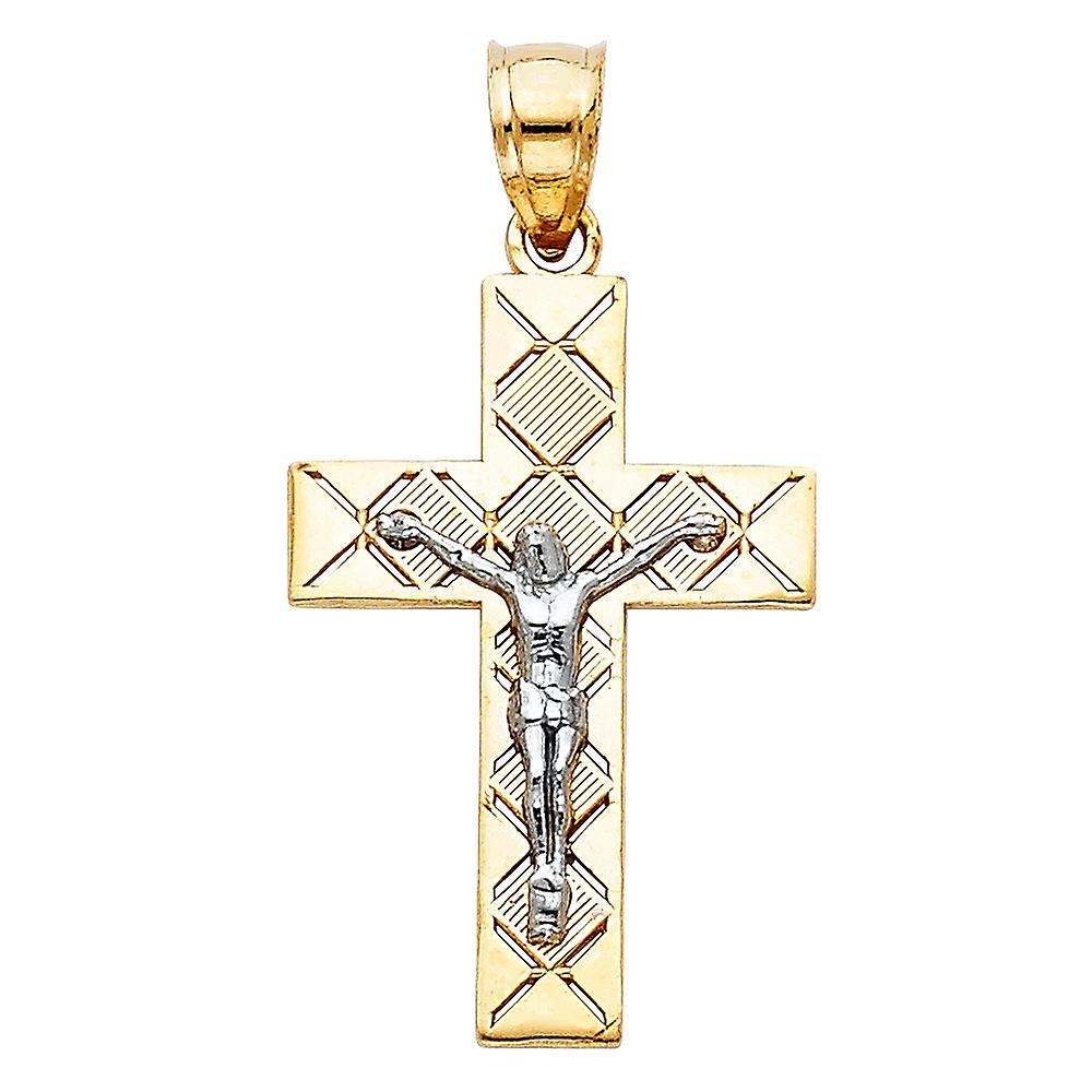 14k Yellow Gold and White Gold Cut Out Design Crucifix Pendant Necklace 16x25mm-Pendant for Women