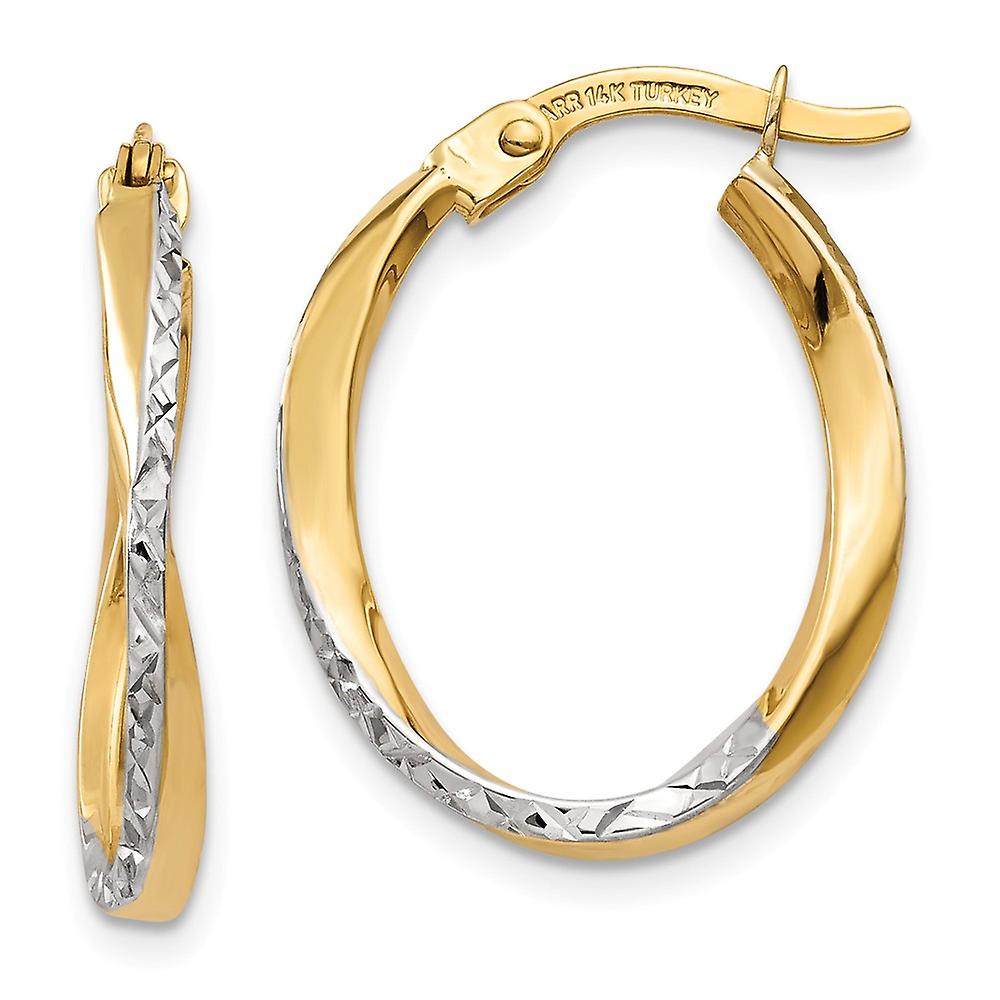 14k Yellow Gold Post and Rhodium Textured And Polished Oval Hoop Earrings 17x2mm Wide-Hoop Earring for Women