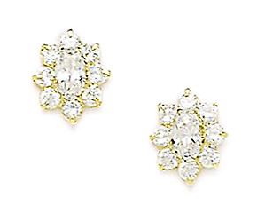 14k Yellow Gold April Clear 3x5mm Cubic Zirconia Flower Screw-Back Earrings - Measures 10x8mm - in 14k Yellow Gold - - [ Potential Enhancement Methods: cubic zirconia ] - Synthetic. Some are covered with a product that makes the stone more durable. - [ Care and Handling: cubic zirconia ] - Clean with warm soapy water and a soft cloth. -