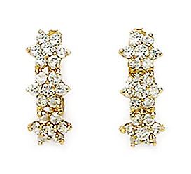 14k Yellow Gold April Clear CZ Triple Flower Leverback Earrings 15x6mm Stud Earring for Women