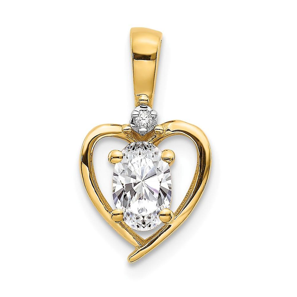 14k Yellow Gold Oval Polished Prong set Diamond and White Topaz Pendant Necklace 17x10mm Wide-Pendant for Women