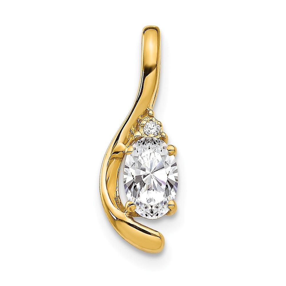 14k Yellow Gold Oval Polished Prong set Diamond and White Topaz Pendant Necklace 17x6mm Wide-Pendant for Women