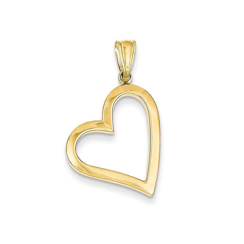14k Yellow Gold Open Polished and Rhodium Hollow Love Heart Pendant Necklace 29x17mm Wide-Pendant for Women